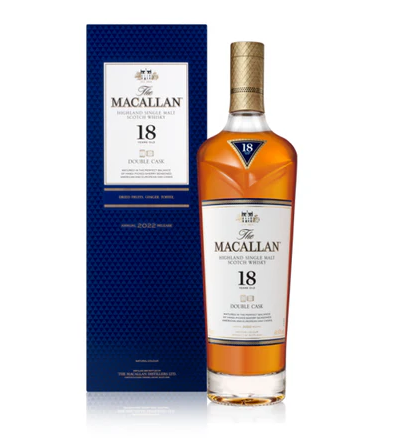 Highland, Scotland- Outstanding, complex Single Malt, matured at The Macallan distillery for a minimum of 18 years in selected Sherry oak casks from Spain. Rich palate of dried fruits, spice, orange and wood smoke. Full-bodied, lingering, smooth, elegant and aromatic finish.